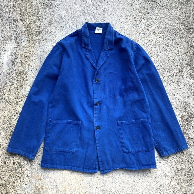 - 【M/L】ADDA ユーロワーク ジャケット カバーオール ブルー 青■ビンテージ オールド レトロ ヨーロッパ古着 コットン フレンチ ドイツ