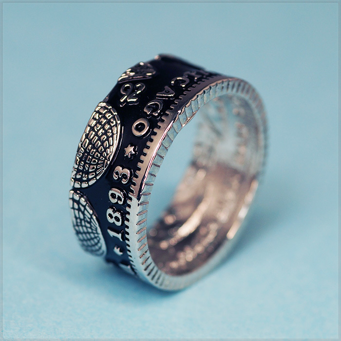 - [RING] 1893年 アメリカ コロンビア博覧会 ハーフダラー 50セント 銀貨コイン デザイン ブラック エナメル彩色 BLACK & SILVER リング 19号
