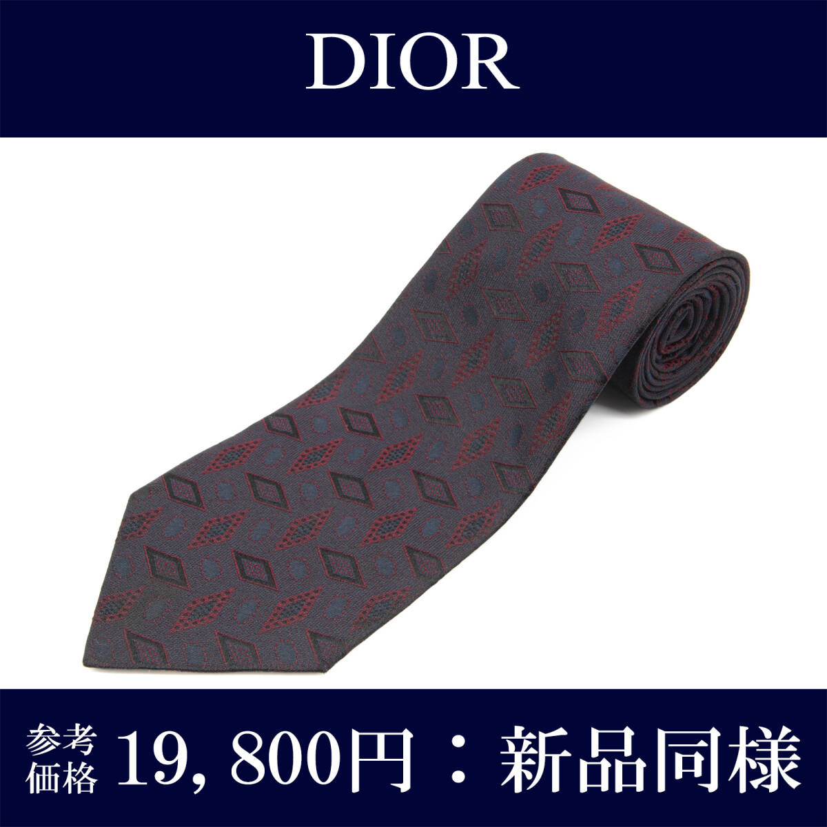 - 送料無料 ディオール ネクタイ 新品同様 ジャガード バーガンディー ネイビーブルー 黒 ブランド ひし形 ダイヤ 珍しい おしゃれ 綺麗 N581