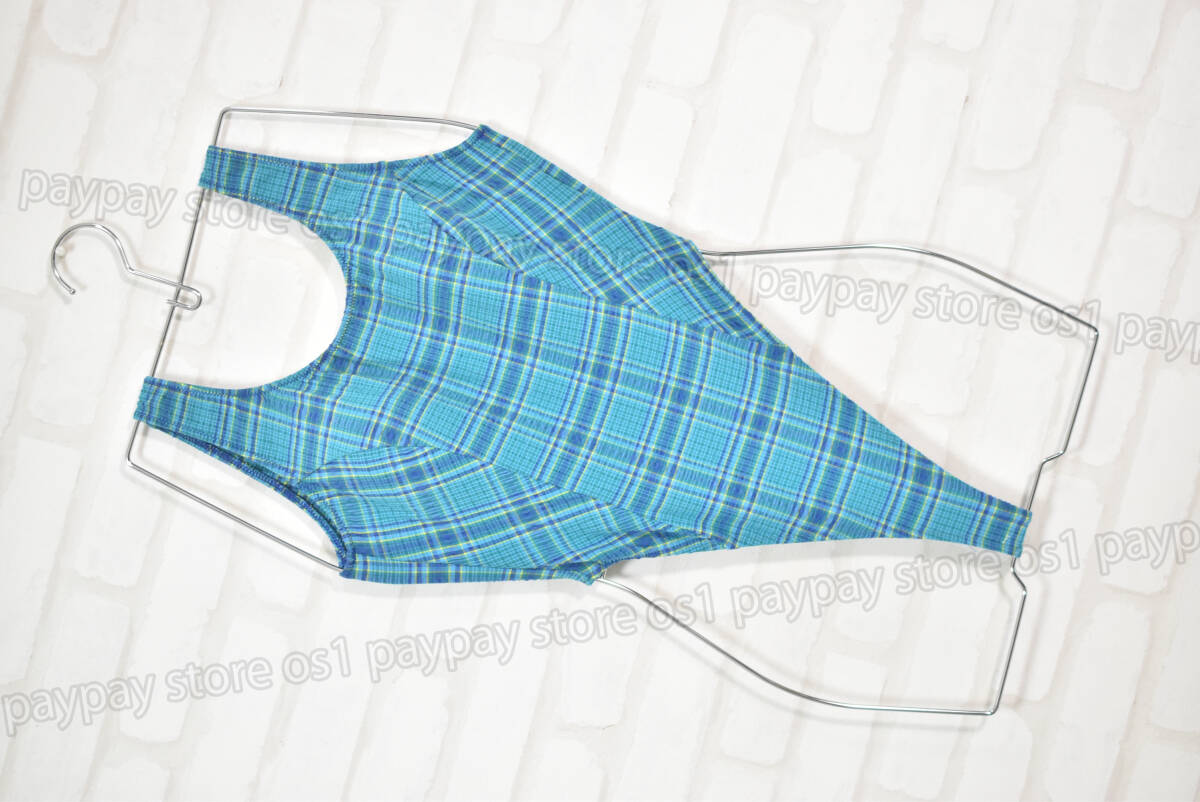 - Juster Tバック型 ハイレグ ワンピース水着 ギンガムチェック柄 ブルー サイズ9M