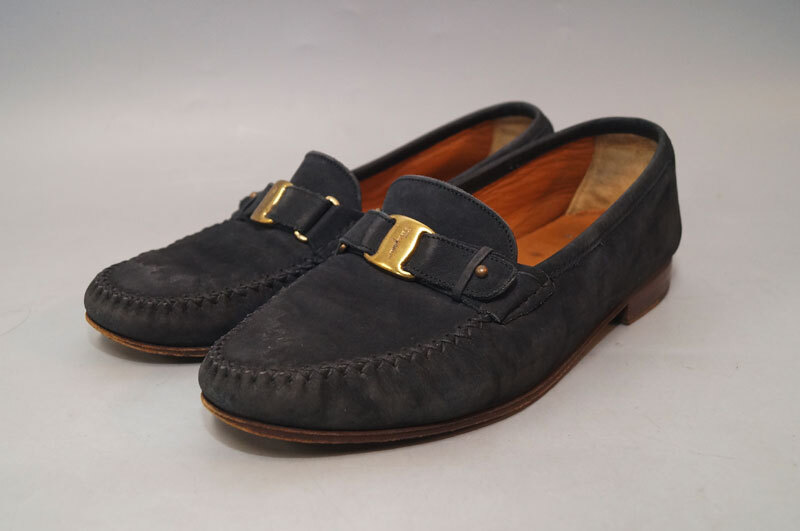 > yf68-Salvatore Ferraamo サルヴァトーレ フェラガモ ローファー 8 1/2 EE ブラック UR20110 ヴァラ金具 スリッポン シューズ イタリア製