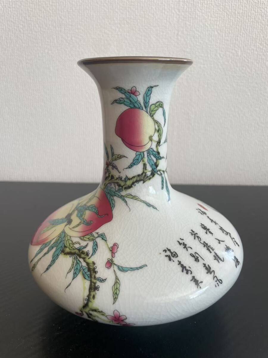 - 中国磁器 清代乾隆粉彩「福寿双全」花瓶 工芸品 中国美術