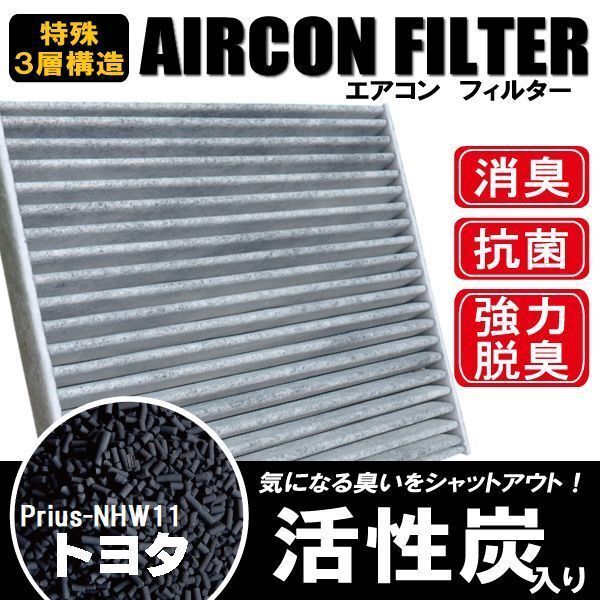 - エアコンフィルター 交換用 TOYOTA トヨタ プリウス NHW11 対応 消臭 抗菌 活性炭入り 取り換え 車内 純正品同等 新品 未使用
