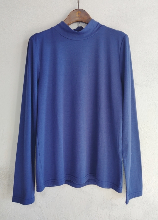 - 【AG by aquagirl アクアガール】[M] 洗える バックプチリボンのハイネックカットソー シンプル可愛い しっとり柔らか ブルー系 送350円