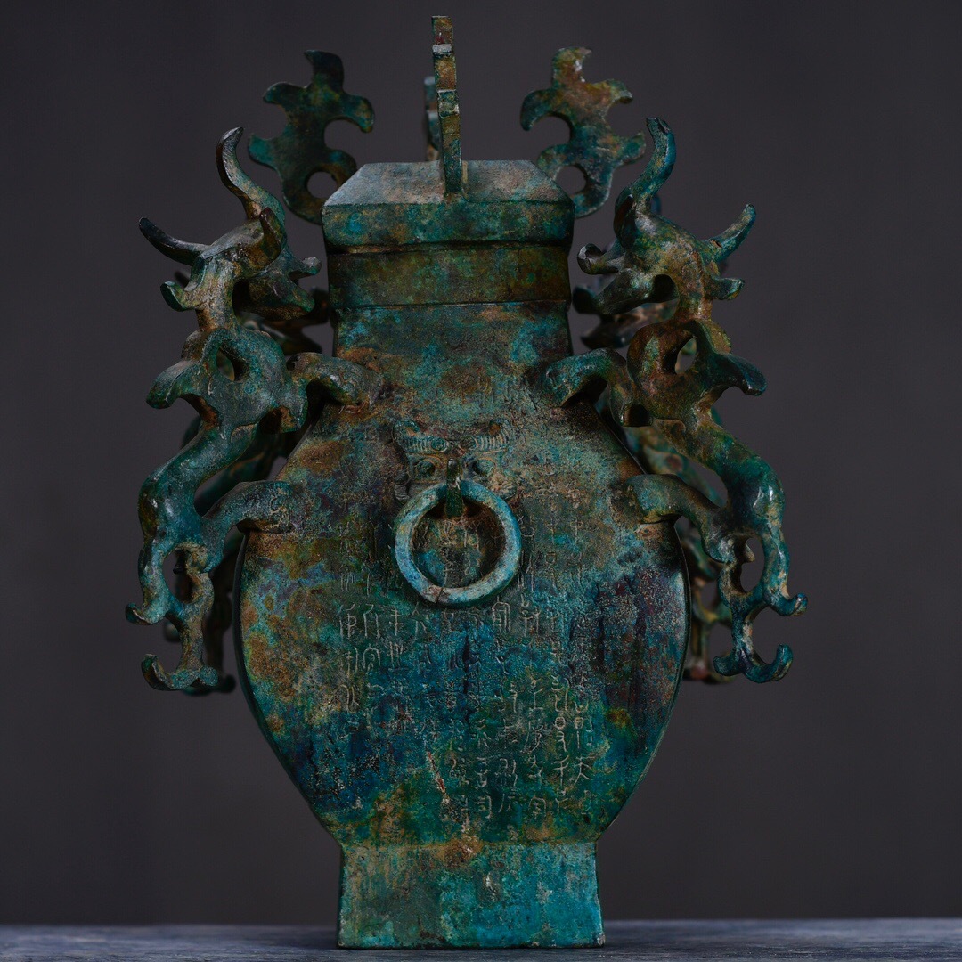 - 『館蔵珍品 戦 青銅製 四龍方壺』置物 賞物 貴重物品 収蔵品 中国古美術