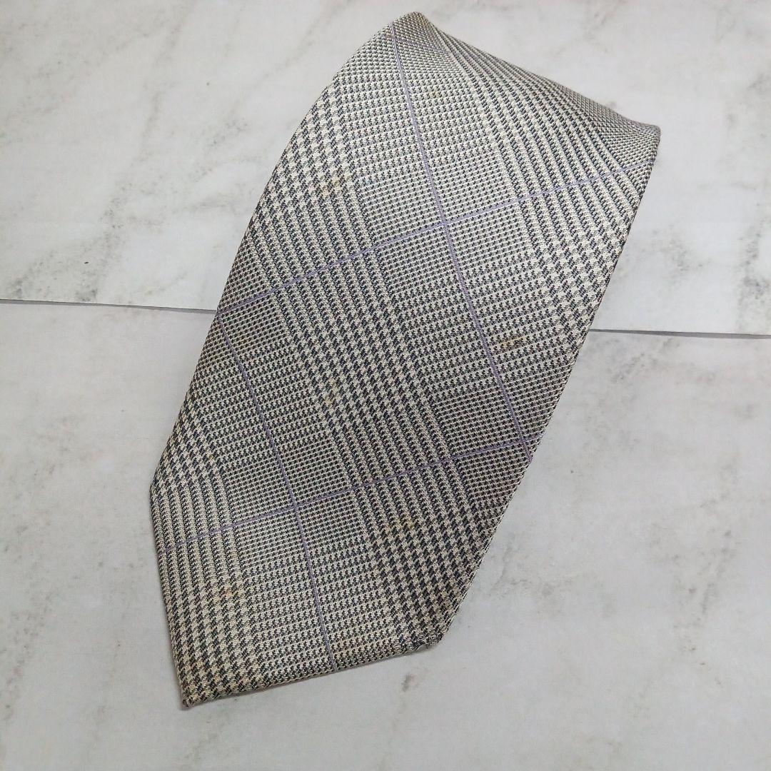 - ビームス ネクタイ 灰色 グレー ペンシルストライプ 絹 シルク【n319】