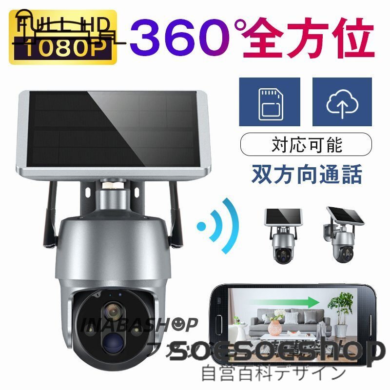 - 防犯カメラ 屋外 ソーラー ワイヤレス Micro SD対応 工事不要 ネットワークカメラ 動作検知 家庭用 パンチルト Wi-Fi 200万画素 スマホ通知