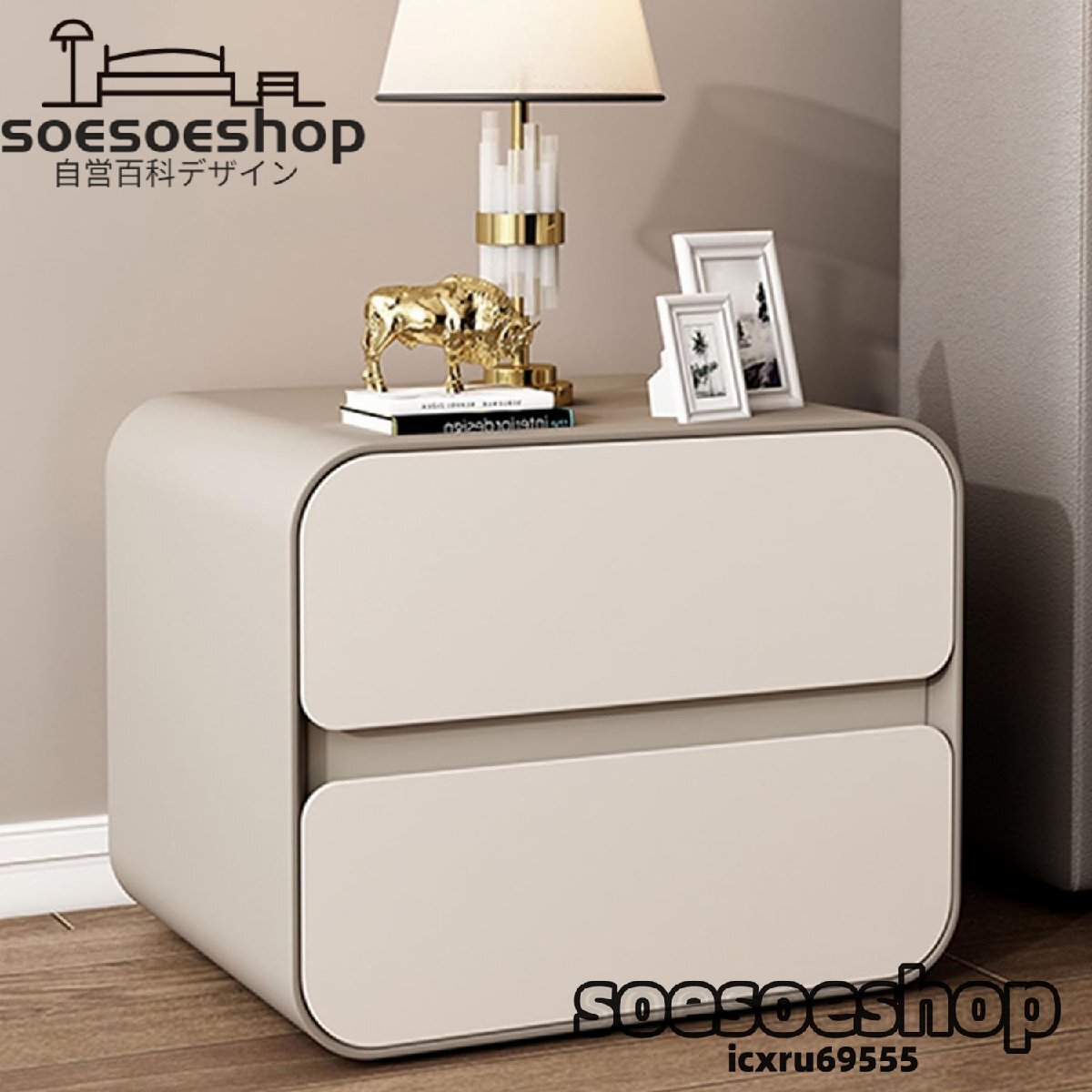 > ナイトスタンド ダブル引き出し化粧台 ダブル引き出しの小さな縁のテーブル ベッドサイド家具 寝室ナイトスタンド 50cm パールホワイト