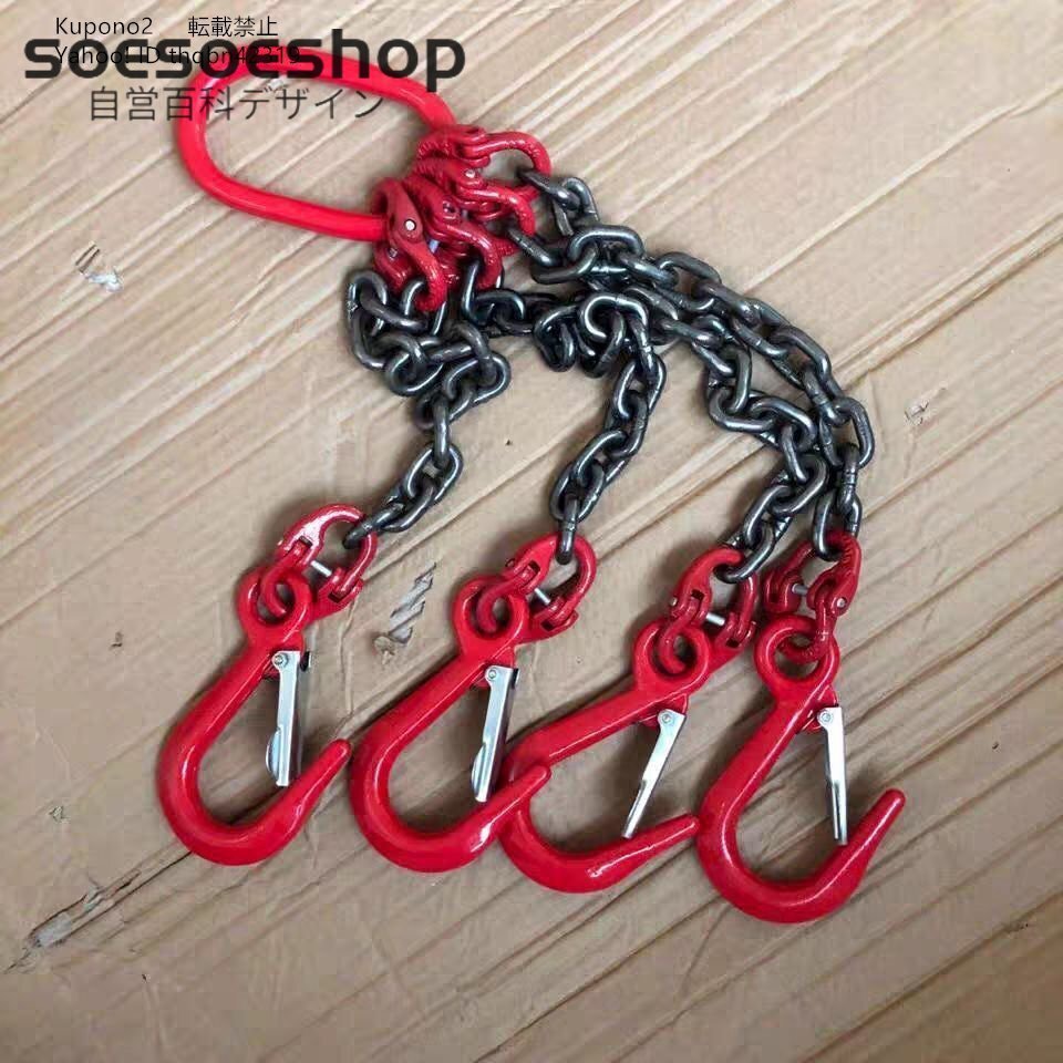 - 品質保証★運搬作業用に チェーンスリング スリングフックタイプ G80マンガン鋼製 使用荷重3t 4本吊りセット ェーン径0.5mm 長さ3m
