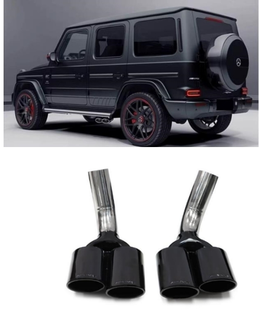- ①メルセデス ベンツ Gクラス W463 G500 G55 AMGルック マフラーカッター テールパイプ 型押しロゴ付き ブラック4本出し ステンレス