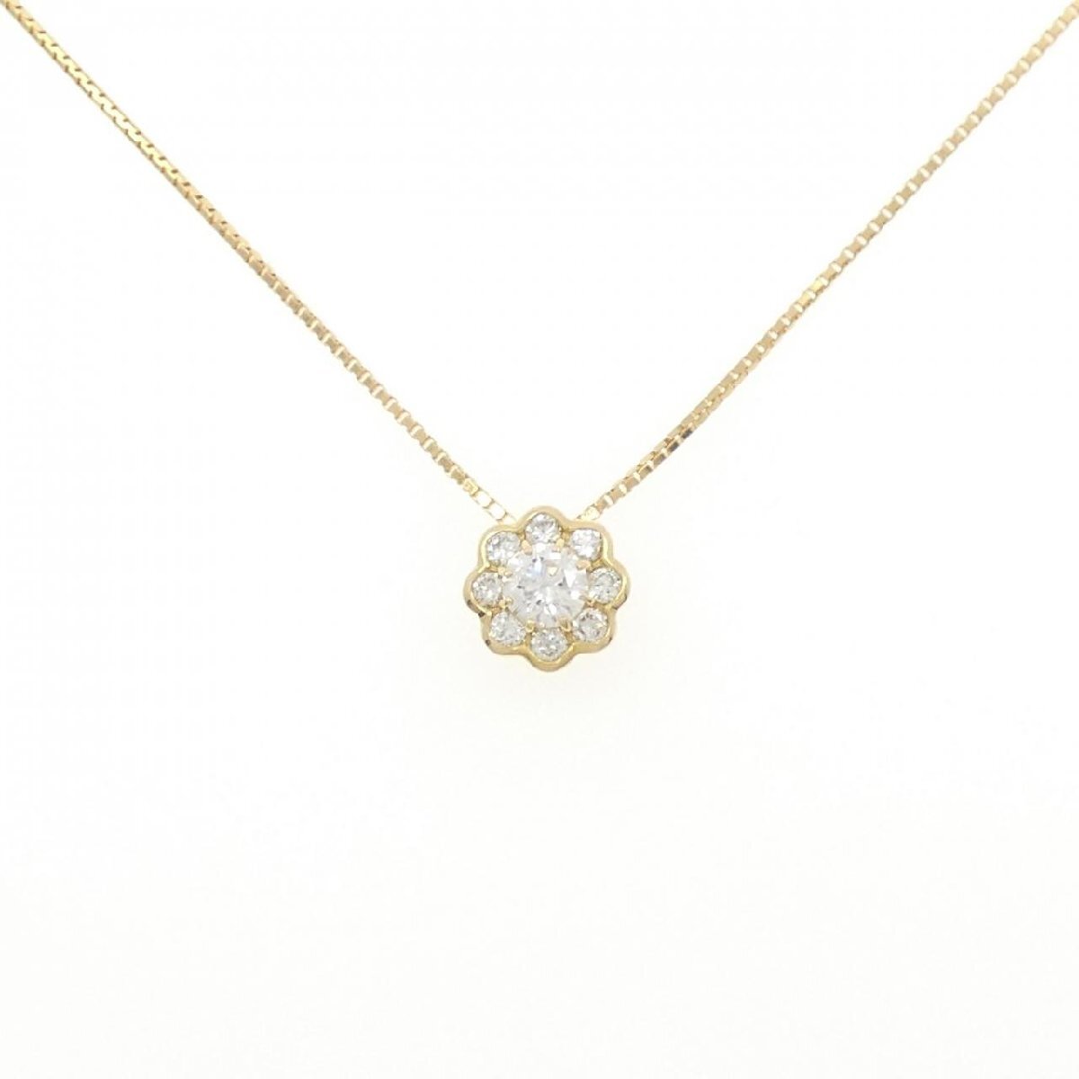 - K18YG フラワー ダイヤモンド ネックレス 0.20CT