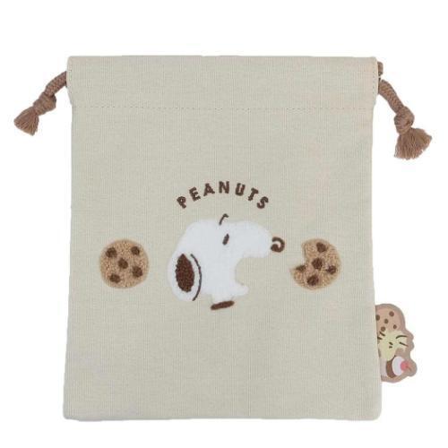 > 【即決】▽スヌーピー 巾着袋▽ マリモクラフト 小物入れ ポーチ ピーナッツ キャラクター クッキー ベージュ 刺繍 かわいい // SPCQ-422