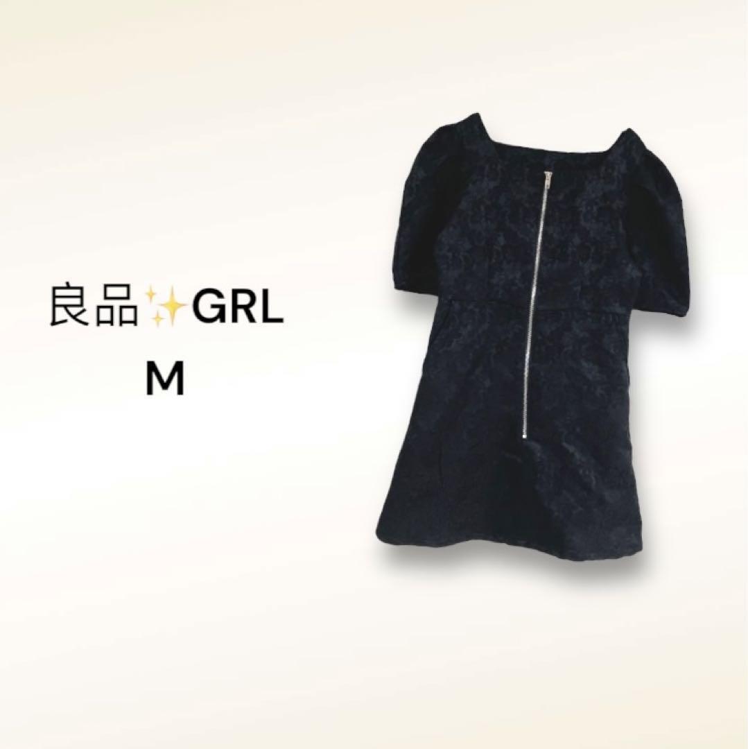 - グレイル GRL ワンピース【M】総柄 フロントファスナー レース風 良品