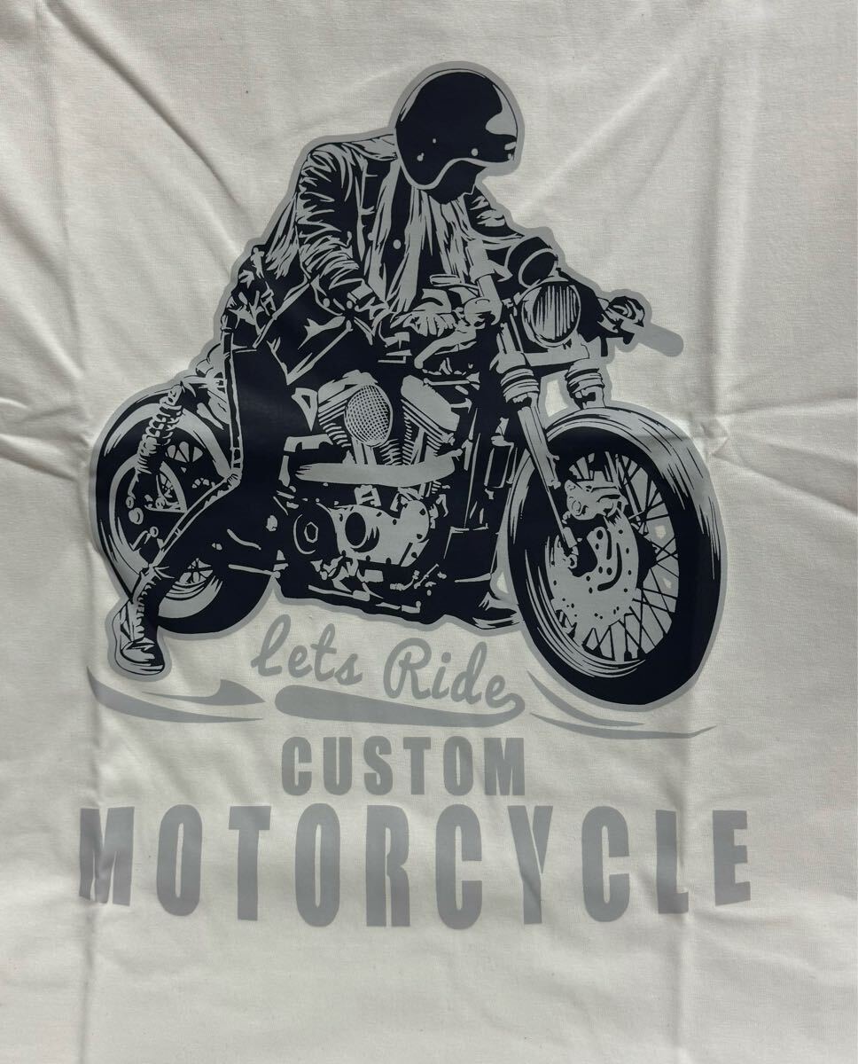 - コットン100%モーターサイクルTシャツ 白メーカーサイズXS(日本規格Mサイズ)