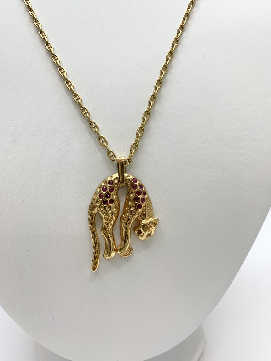> 【送料無料】K18/18金 パンサー 赤石 デザインネックレス 48cm 14.9g ゴールド GOLD 投資 店舗受け取り可