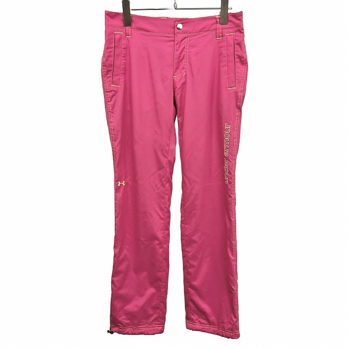 - アンダーアーマー UNDER ARMOUR 薄手 パンツ メッシュ裏地 ウエストゴム ロゴ刺繍 ポリエステル100% S (SM) ピンク ピンク×黄 レディース