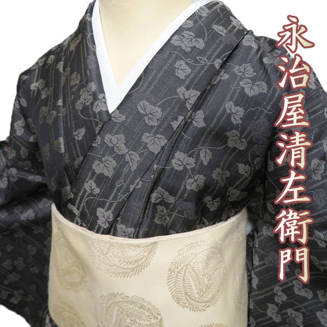 > 特選 永治屋清左衛門 お召 お召し 御召 着物 中古 正絹 袷 反端付き 蔦模様 消炭色 多色 身丈165cm 裄68cm L トール きもの北條 A1155-2