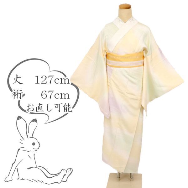 - 【長襦袢】 上質 ふんわり霞ぼかし 黄×緑×紫 正絹着物 J11-3