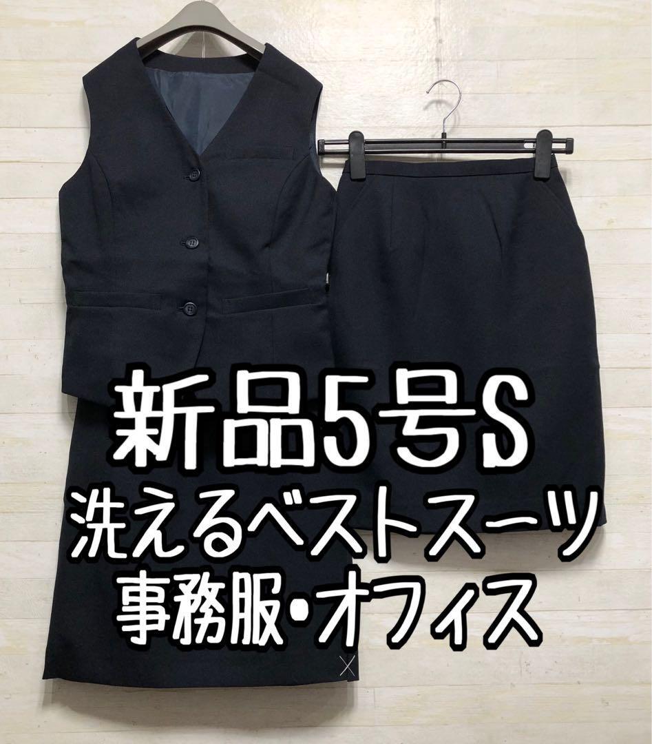 - 新品☆5号S紺系ベストスカートスーツ♪防汚抗菌消臭加工♪スカート2枚付〇D581
