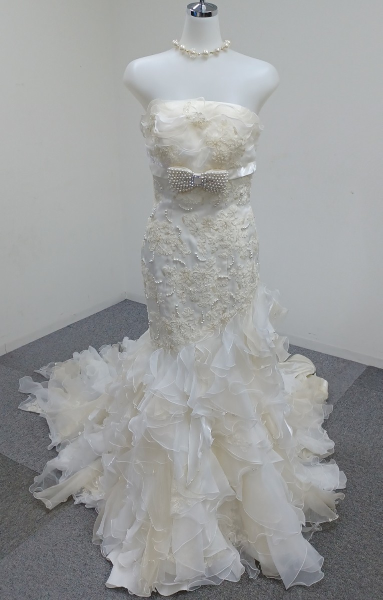 > 【送料無料】石) カラードレス ③ 9号 ホワイト 白 リボン サンクタカリナ ドレス 結婚式 パーティー 衣装 ウエディング (231114)