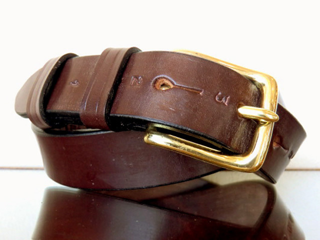 > 新品JabezCliffジャベツクリフ レザーベルト28mm チェスナッツ(ダークブラウン)32inch パラフィン加工ロウびき