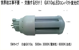 > FDL18EX-L 100%工事不要 交換するだけ! LEDコンパクト蛍光灯 GX10q 5W 500Lm 3000K(電球色)