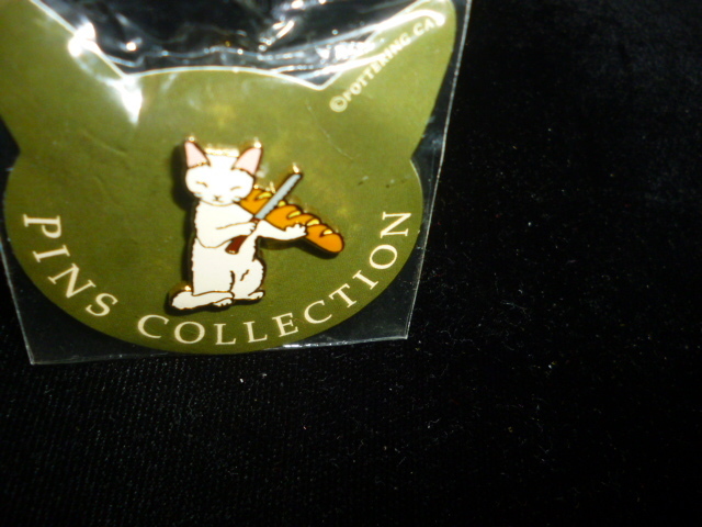 - 未使用 フランスパンでヴァイオリン 猫 ピンバッジ