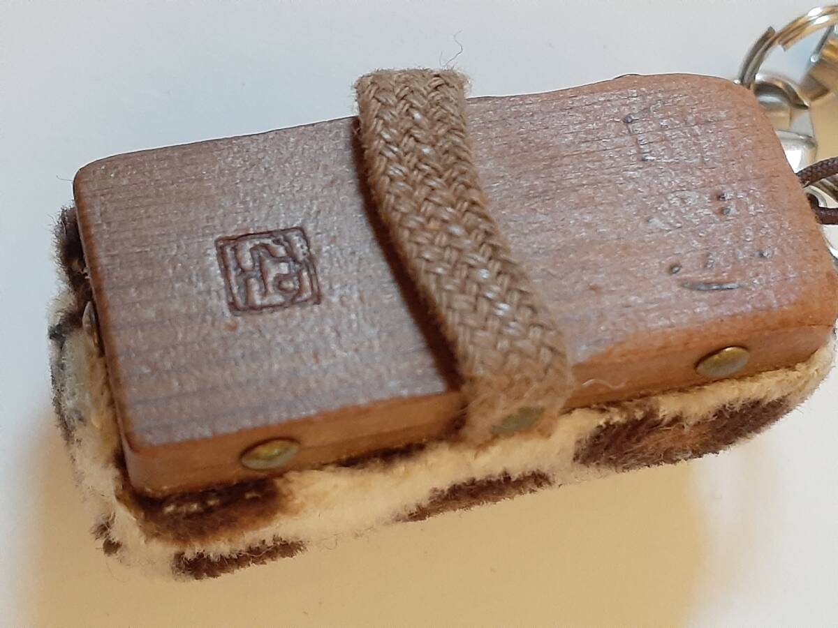 - チエモク製 黒板消しの ストラップ(白豹柄)