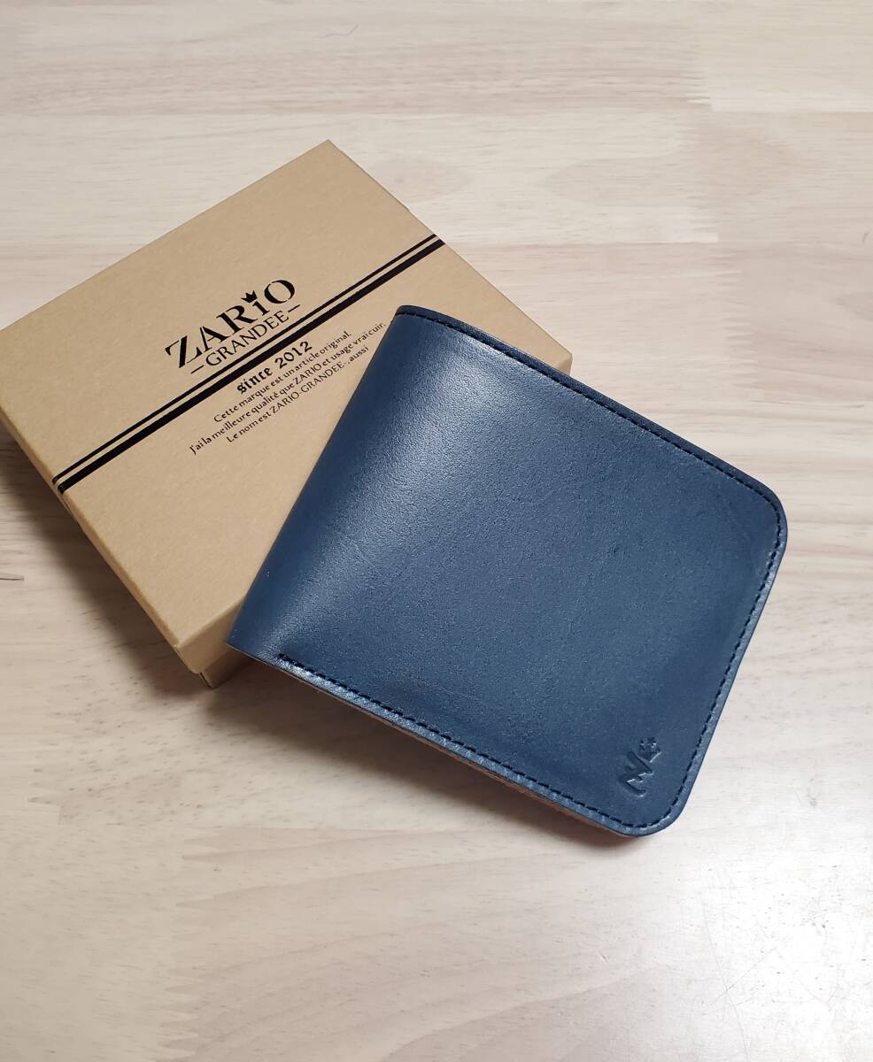 - 新品 未使用 美品 ZARIO-grandee- 二つ折り財布 メンズ 折り財布 折財布 革 本革 栃木レザー 日本製 ネイビー×キャメル