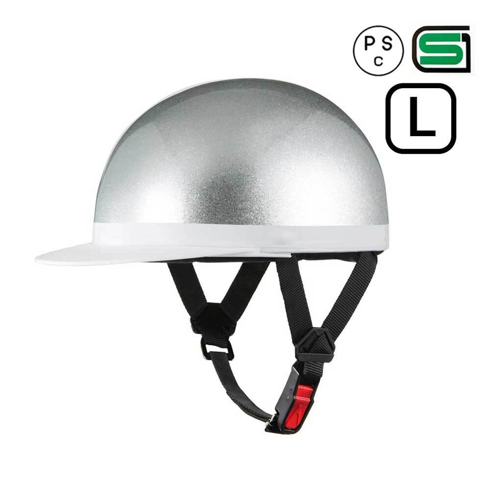 > バイクヘルメット 半キャップ 半ヘル 白ツバ Lサイズ 57~59cm SG規格 PSCマーク ハーフヘルメット ヘルメット シルバーラメ オートバイ