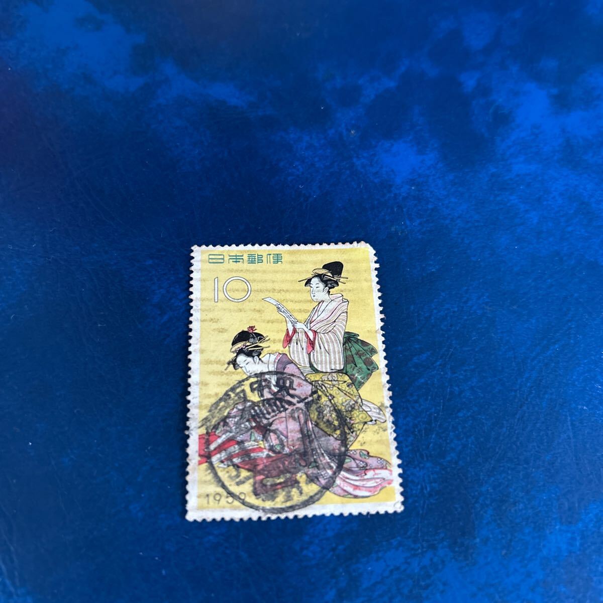 - ★使用済み 切手趣味週間 1959年 昭和34年 浮世源氏 細田栄之 満月印 消印