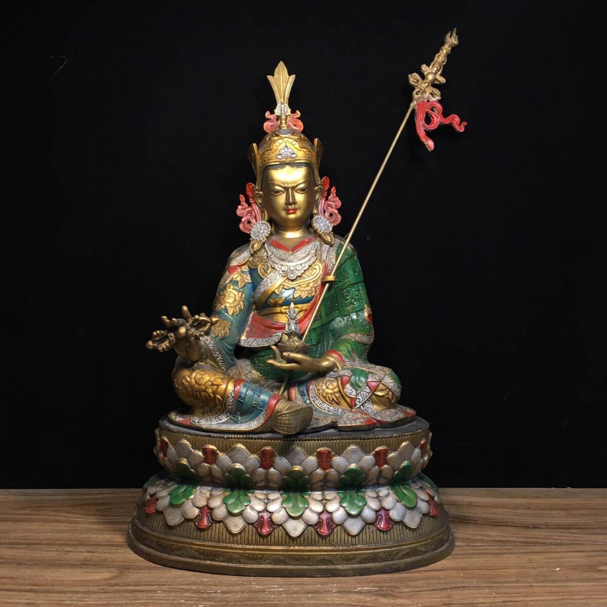 - ▽鴻▽ 銅製 金鍍 彩繪 蓮花生大師像 置物 古賞物 中国古玩 中国古美術