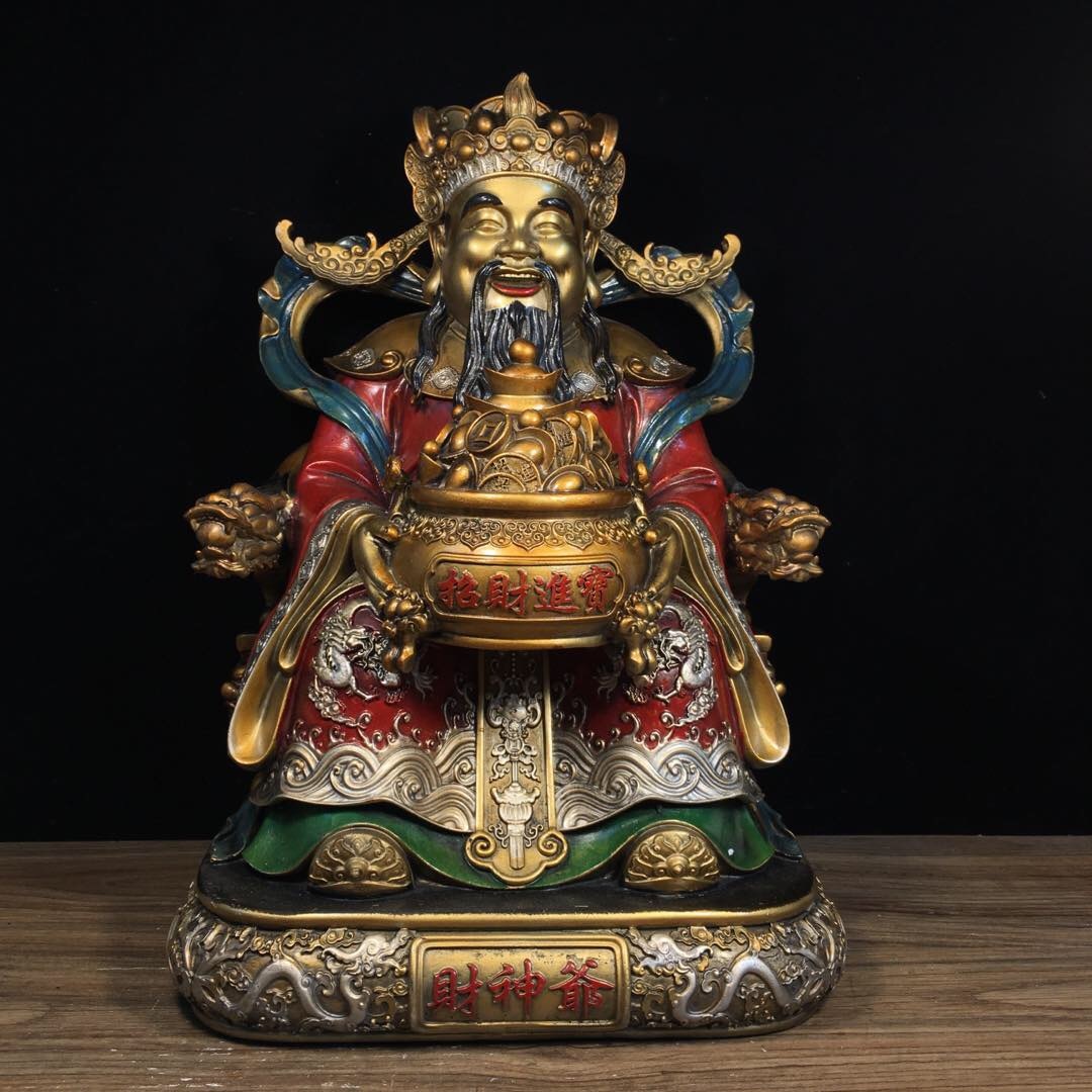 - 『館蔵珍品 銅製 金鍍 彩繪 財神爺像』置物 賞物 貴重物品 収蔵品 中国古美術