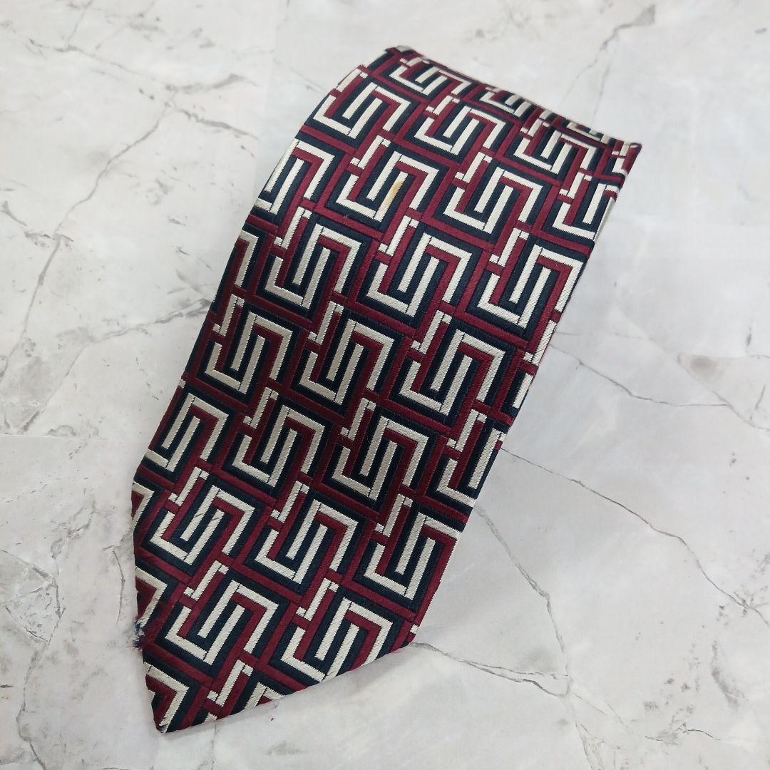 - ポールスチュアート ネクタイ トリプルスクエア 赤×銀×黒 絹【n652】