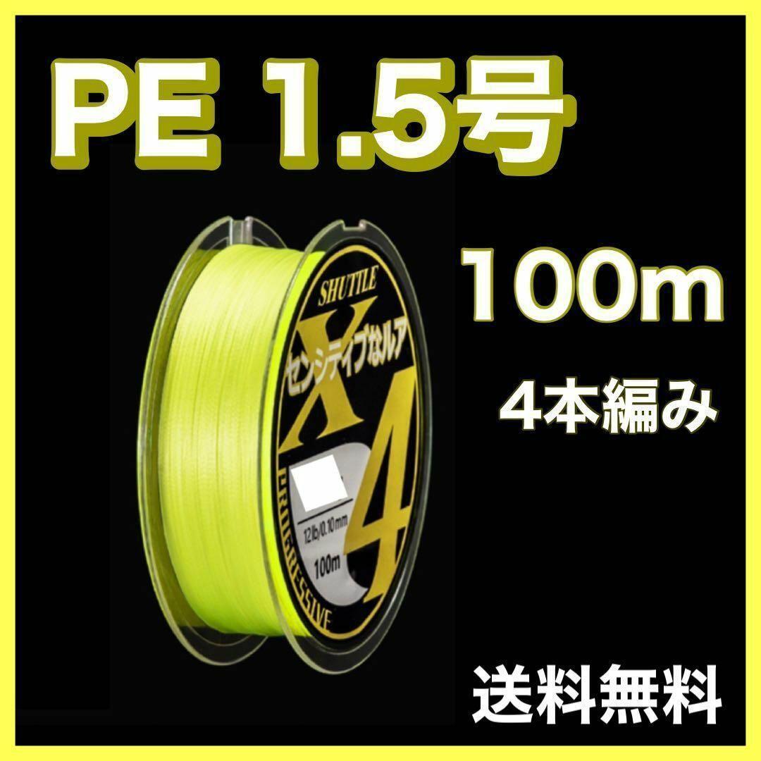 - PEライン 1.5号 100m 4本編 黄色 イエロー アジング エギング