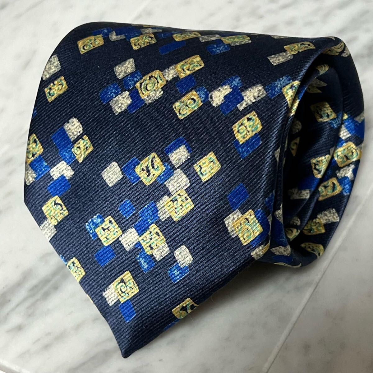 - 【美品】 999円~ LANCEL ネクタイ ネイビー 総柄 (B7)