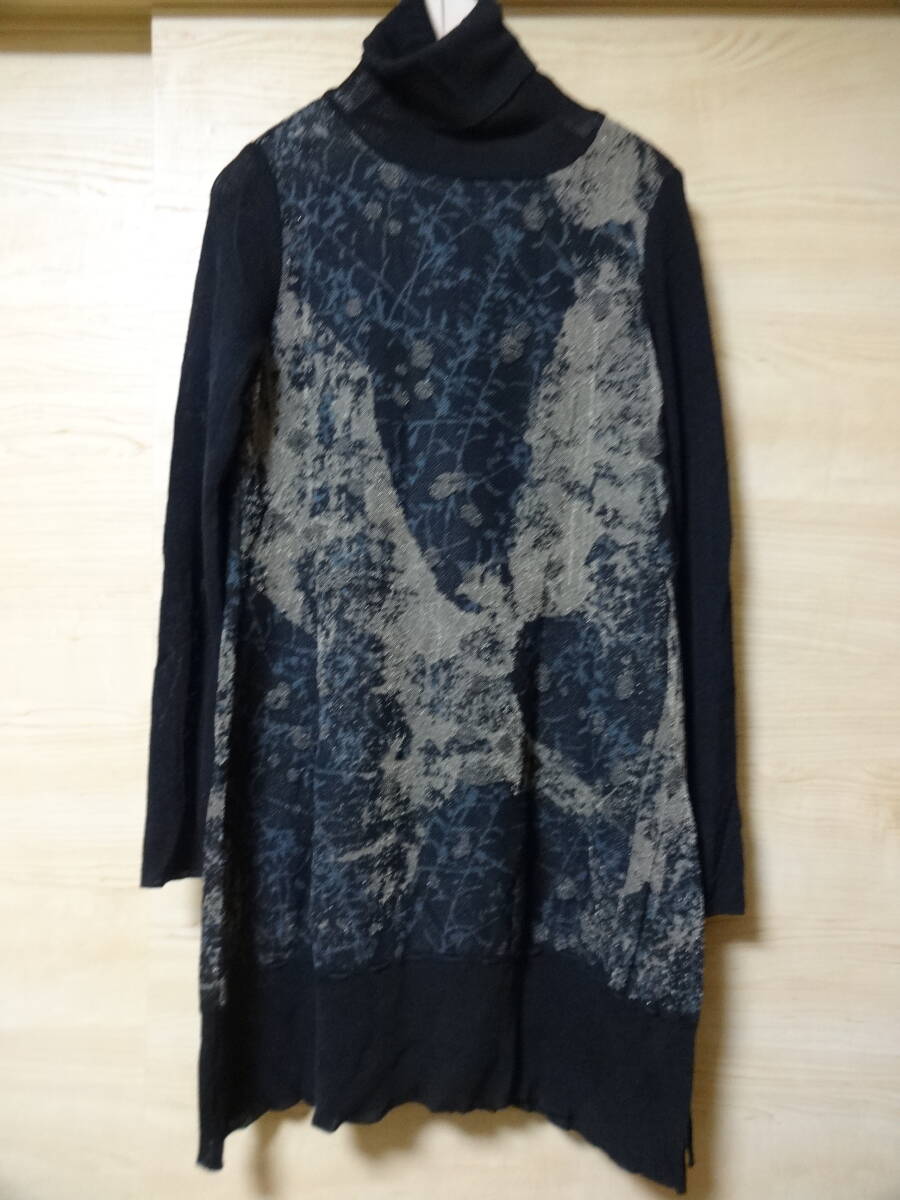 - Marute ニット風チュニック サイズ38 R8283 黒系柄金ラメ ロングセーター エプ タモーダ