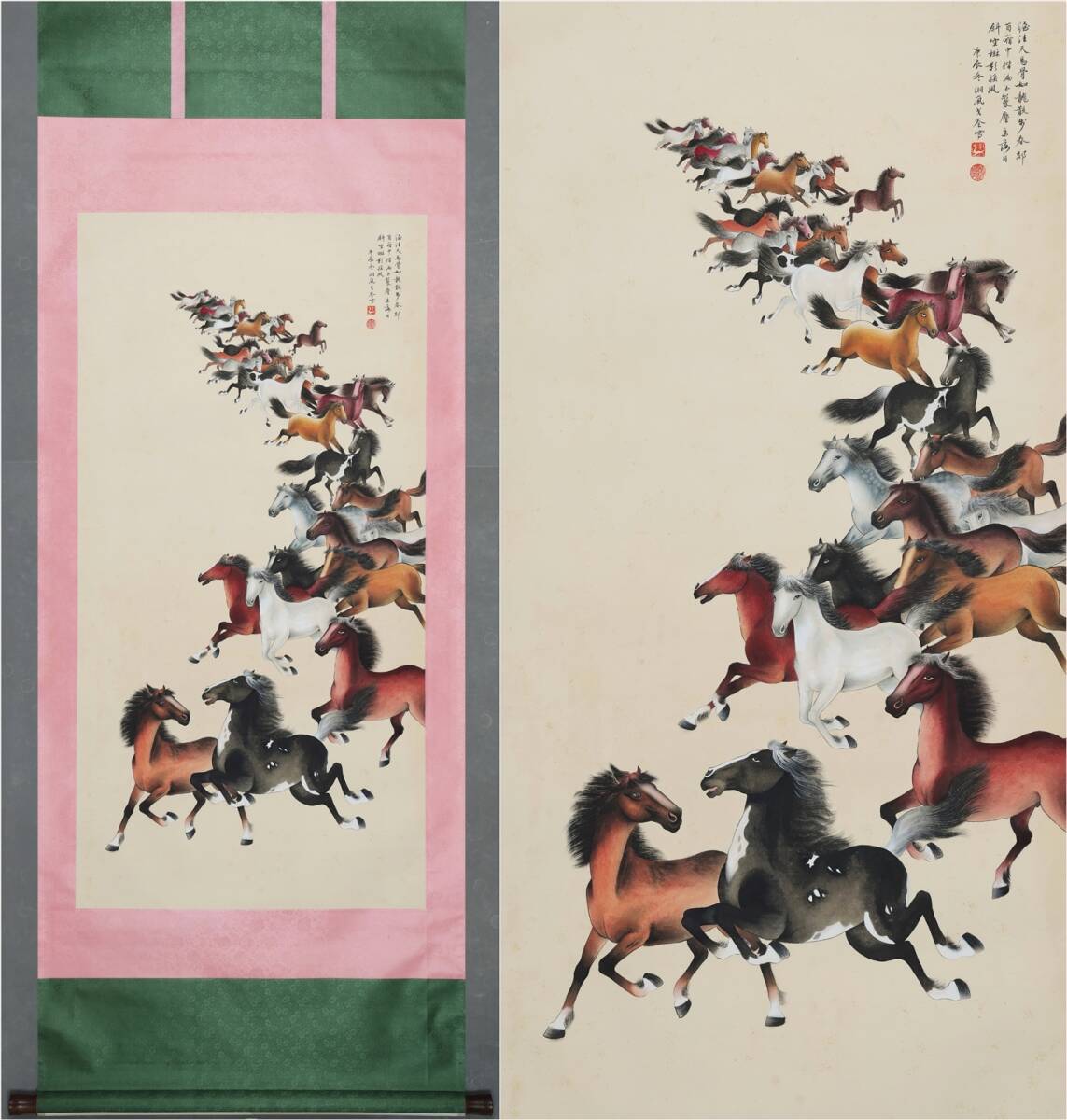 > 古美術 掛け軸 中国・近現代 「戈湘嵐書」 紙本 【千軍万馬図】 立軸 書道 巻き物 肉筆保証 唐物 古画 画心130x65cm LT-2503113
