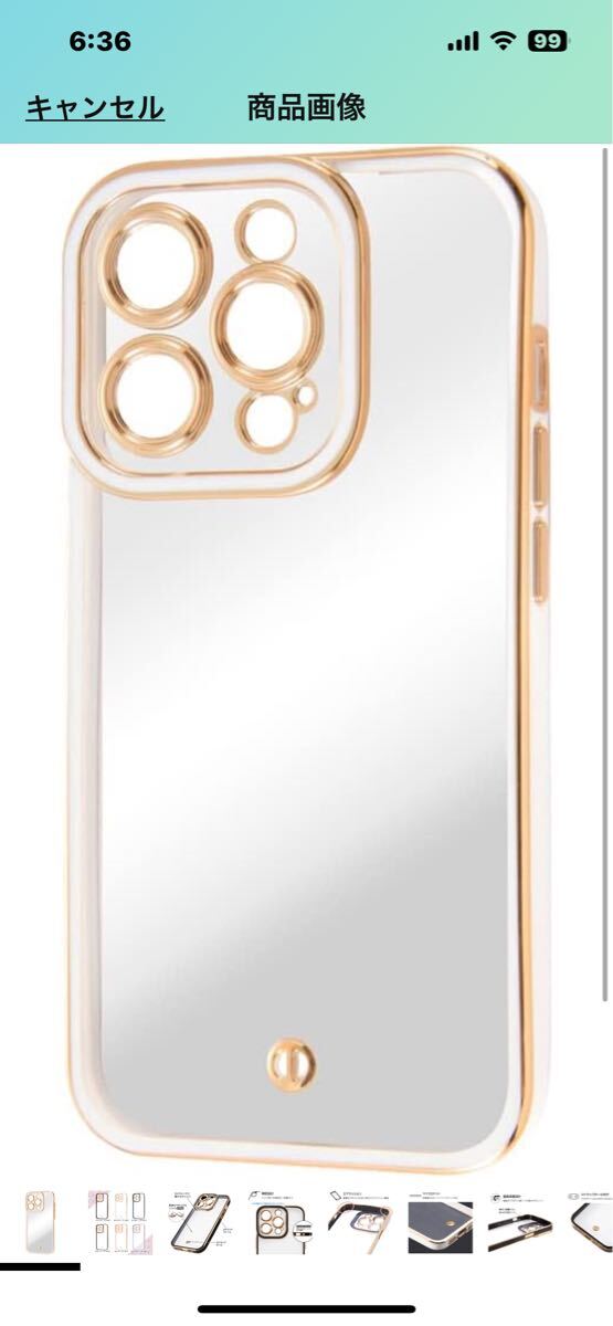- h267 ガラスフィルム付 iPhone 14 Pro ケース TPU ソフト ケース メタリック ストラップホール付 ホワイト x ゴールド クリア 透明