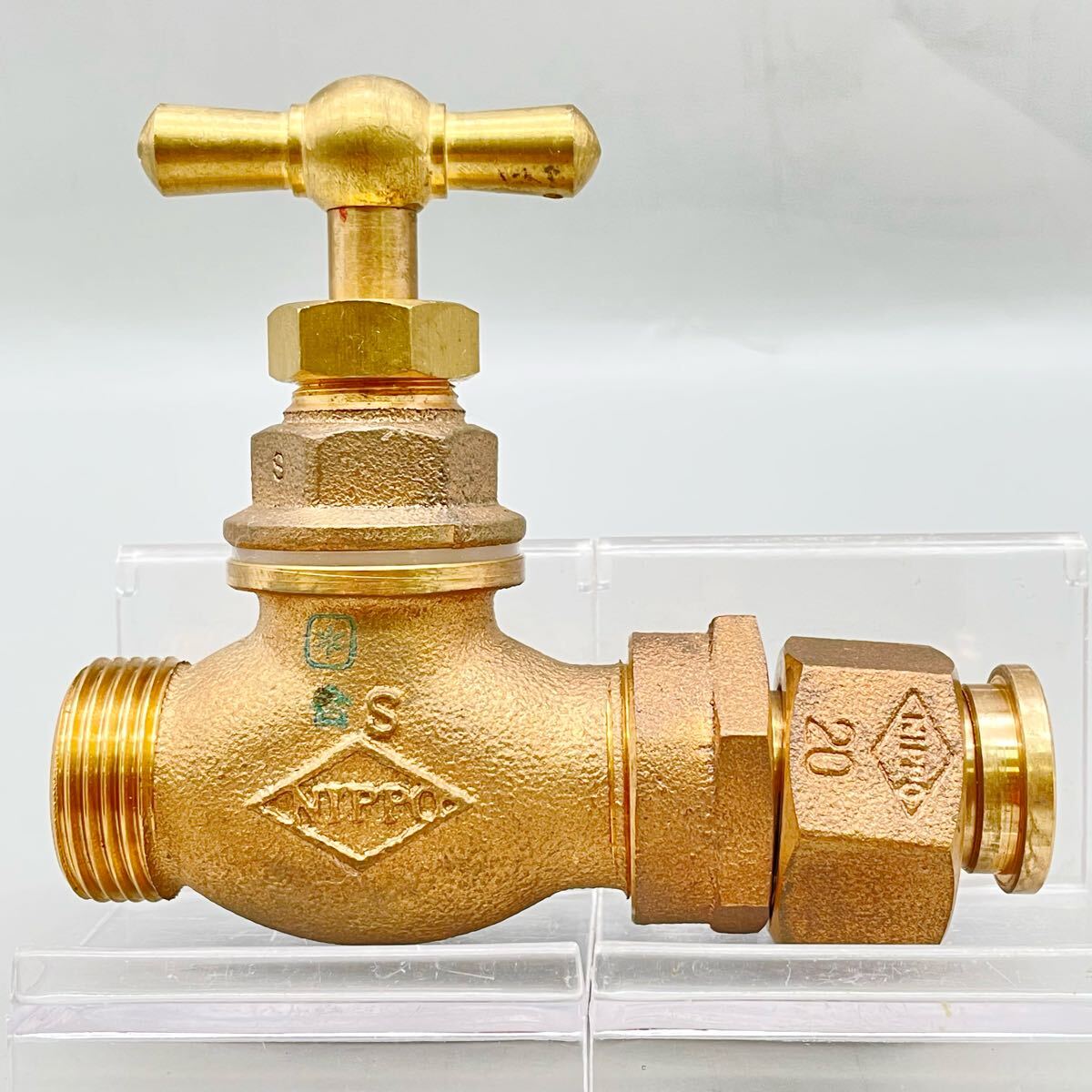 > [新品 未使用品] 黄銅製 NIPPO 日邦バルブ 伸縮止水栓 20mm 水道 配管 甲止 水栓 配管工 パーツ 交換 部品 金具 真鍮製 金物屋 在庫品