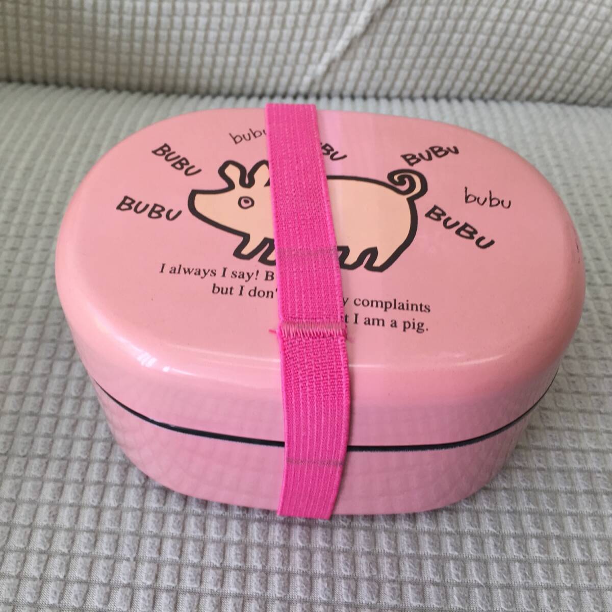 - [食器] 弁当箱「ランチボックス」2段弁当 高さ:約8cm 縦×横:約10×14cm 長期保管品 日焼けあり 傷あり ぶた ピンク 可愛い