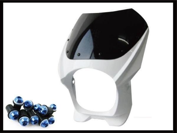 - MADMAX バイク用品 ビキニカウル 180φ ホワイト スクリーンボルトブルー付属/カスタム/ドレスアップ/汎用/旧車等に!【送料800円】