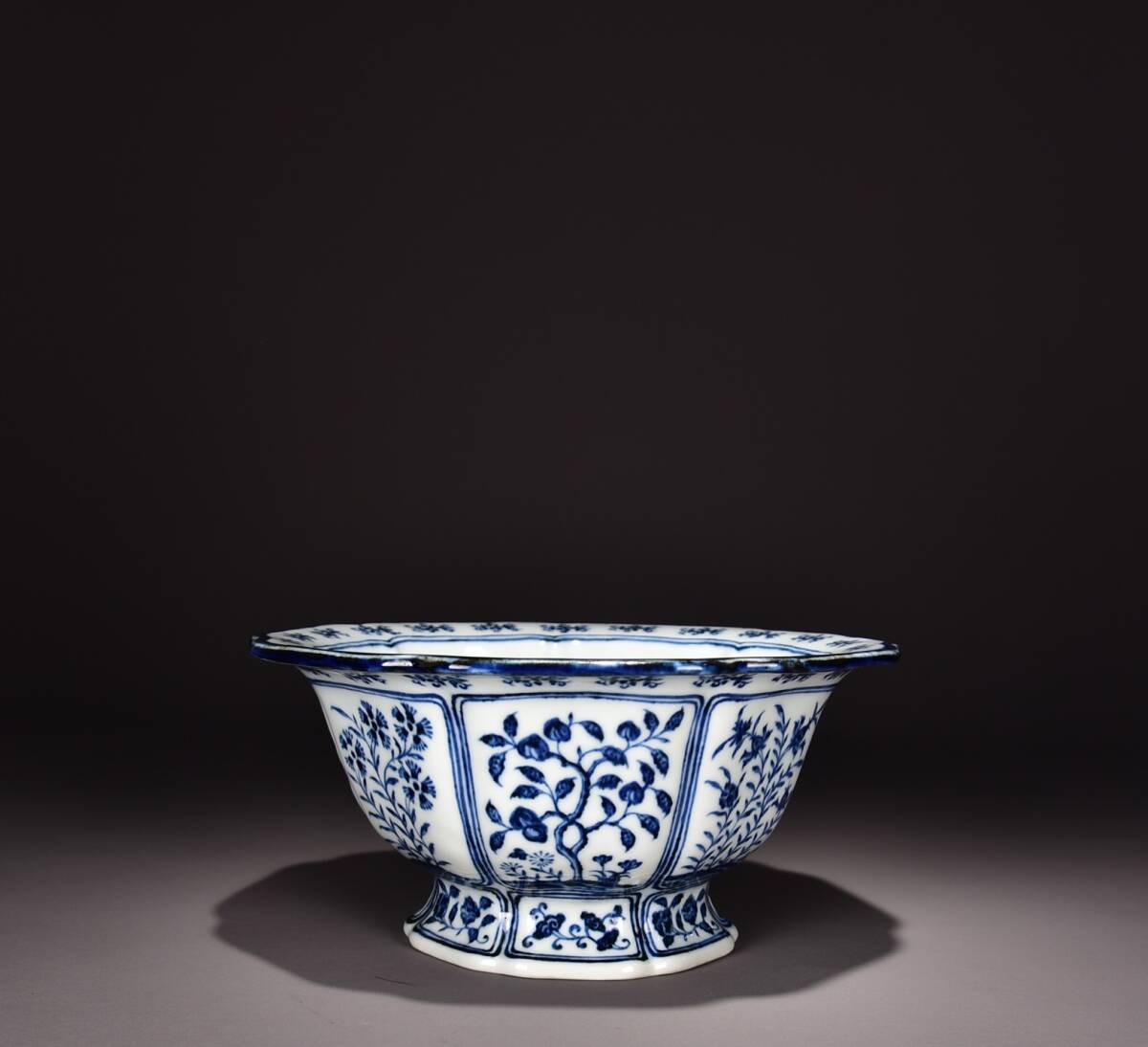 > 『館蔵珍品 明 宣德年製款 古陶瓷品 青花 折枝花卉紋 花盆』置物 賞物 貴重物品 収蔵品 中国古美術