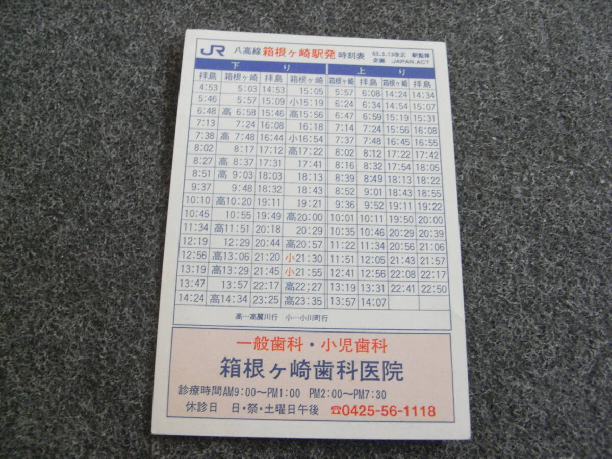 - 八高線 箱根ヶ崎駅発時刻表 昭和63年3月13日改正/五日市線拝島駅発時刻表/西武線拝島駅発時刻表