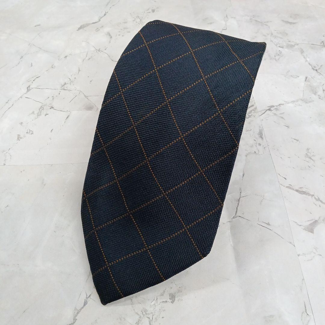 - チャールズヒル ネクタイ 紺+茶 ダイヤ柄 シルク100% 絹【n751】