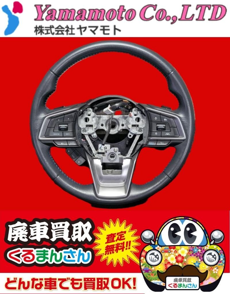 > [Z598-A10]インプレッサ XV GTE 純正 ステアリング ハンドル レザー 青ステッチ 革巻き GT3/GT7/GTE型 スポーツ アドバンス パドルシフト