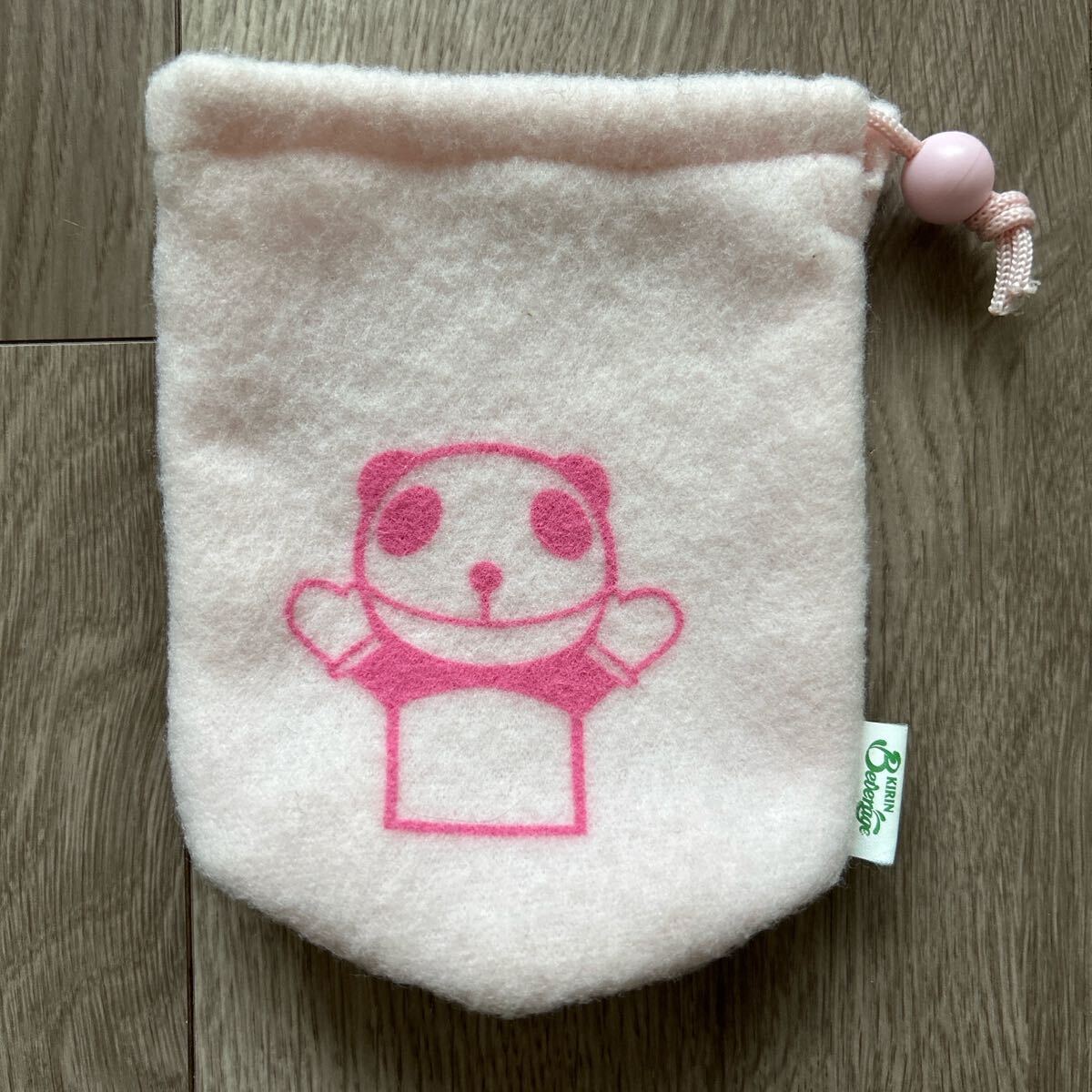 - KIRIN キリン 生茶パンダ フリース 小袋 ピンク かわいい レア品 ペットボトルカバー 巾着袋 入れ物 ボトルホルダー 非売品 ゆるキャラ