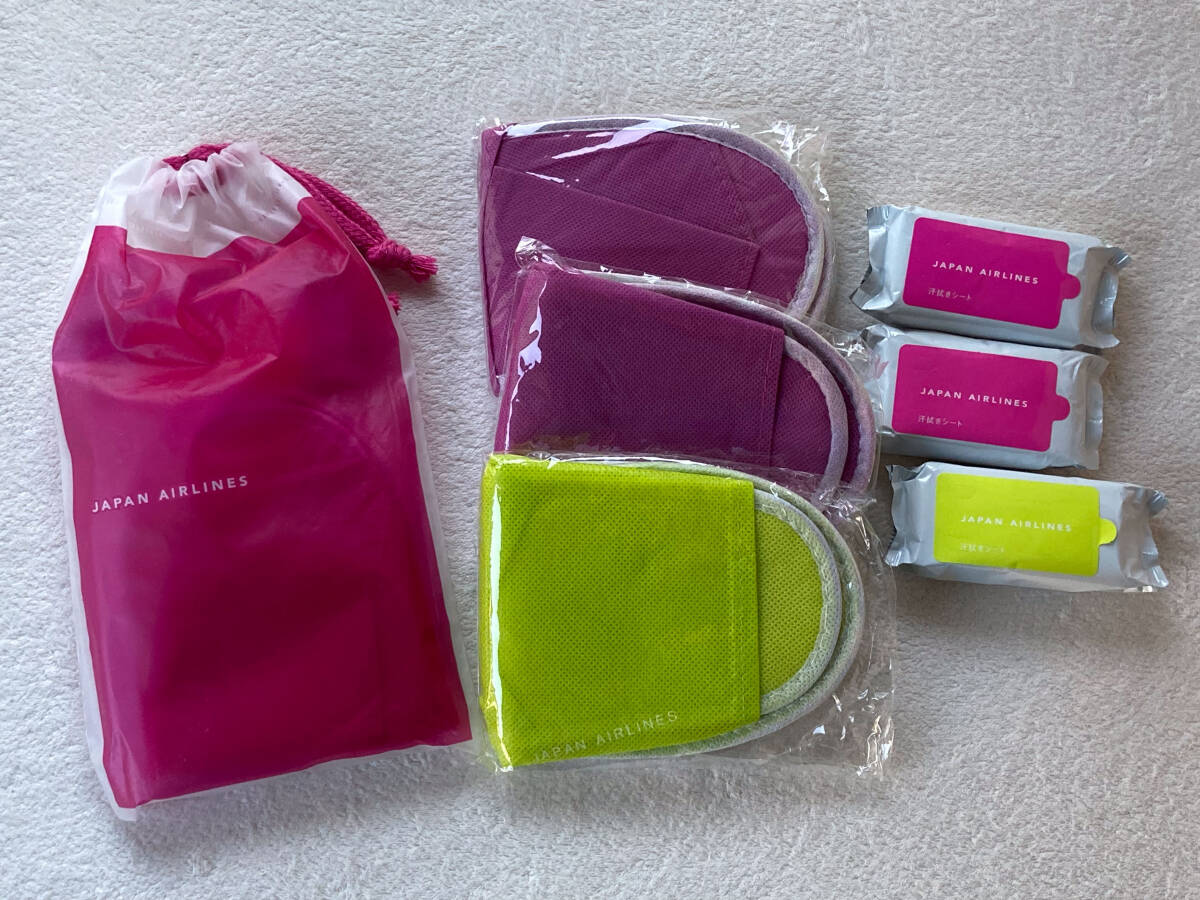 > 【送料込み・未開封レア品】日本航空 (JAL / JL) 折りたたみスリッパ 4足セット & アメニティセット