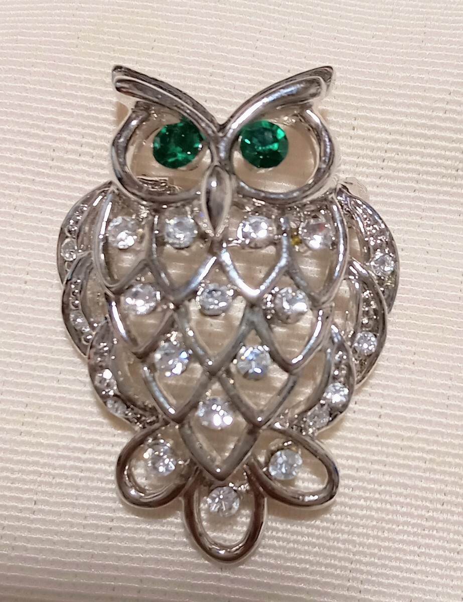 - ブローチ ふくろう 緑の目