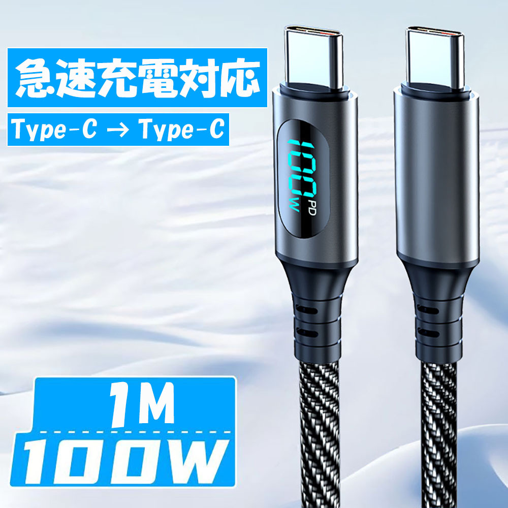 - USB PD ケーブル 1m ブラック 黒 Type-C Type-C 急速充電 デジタル表示 100W 最大480Mbps